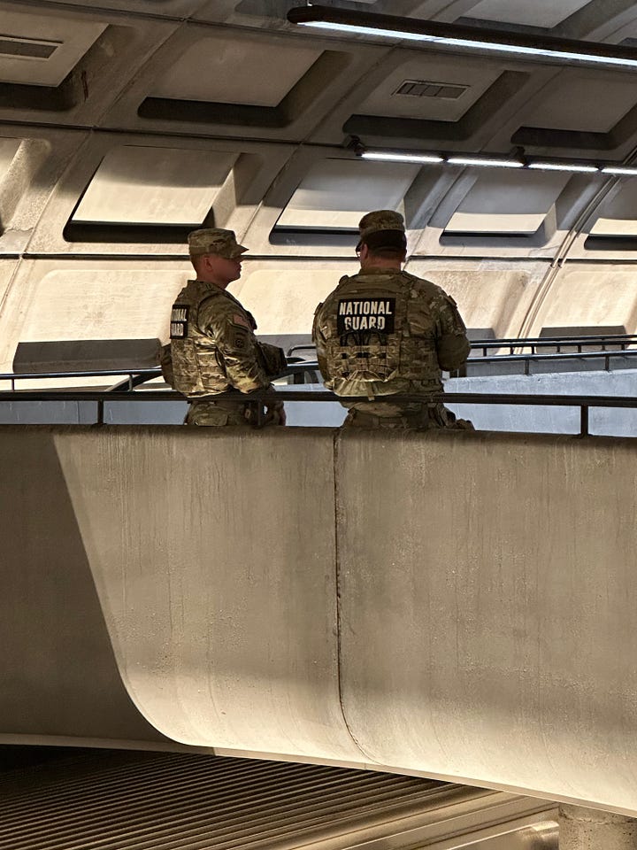 I’m not the only one confused about what the Guard is actually doing and how they are contributing to public safety. If you look at the official website, the scant text mentions beautification, high-visibility patrols, and traffic control. But it’s hard to connect the dots. At a recent meeting of my advisory neighborhood commission (a hyper local governmental body that normally is consumed with zoning and liquor licenses), high-ranking officers from the MPD had been invited to share with the public. They noted ongoing cooperation with federal law enforcement partners (such as Park Police, uniformed Secret Service, Drug Enforcement Administration etc.), but no one could answer what the National Guard was up to, other than noting that all Guard members are deputized as U.S. Marshals. In fact, the highest ranking officer at the meeting said that if the ANC wanted to know what the National Guard was up to, they should invite the Guard to their next meeting. Wow.