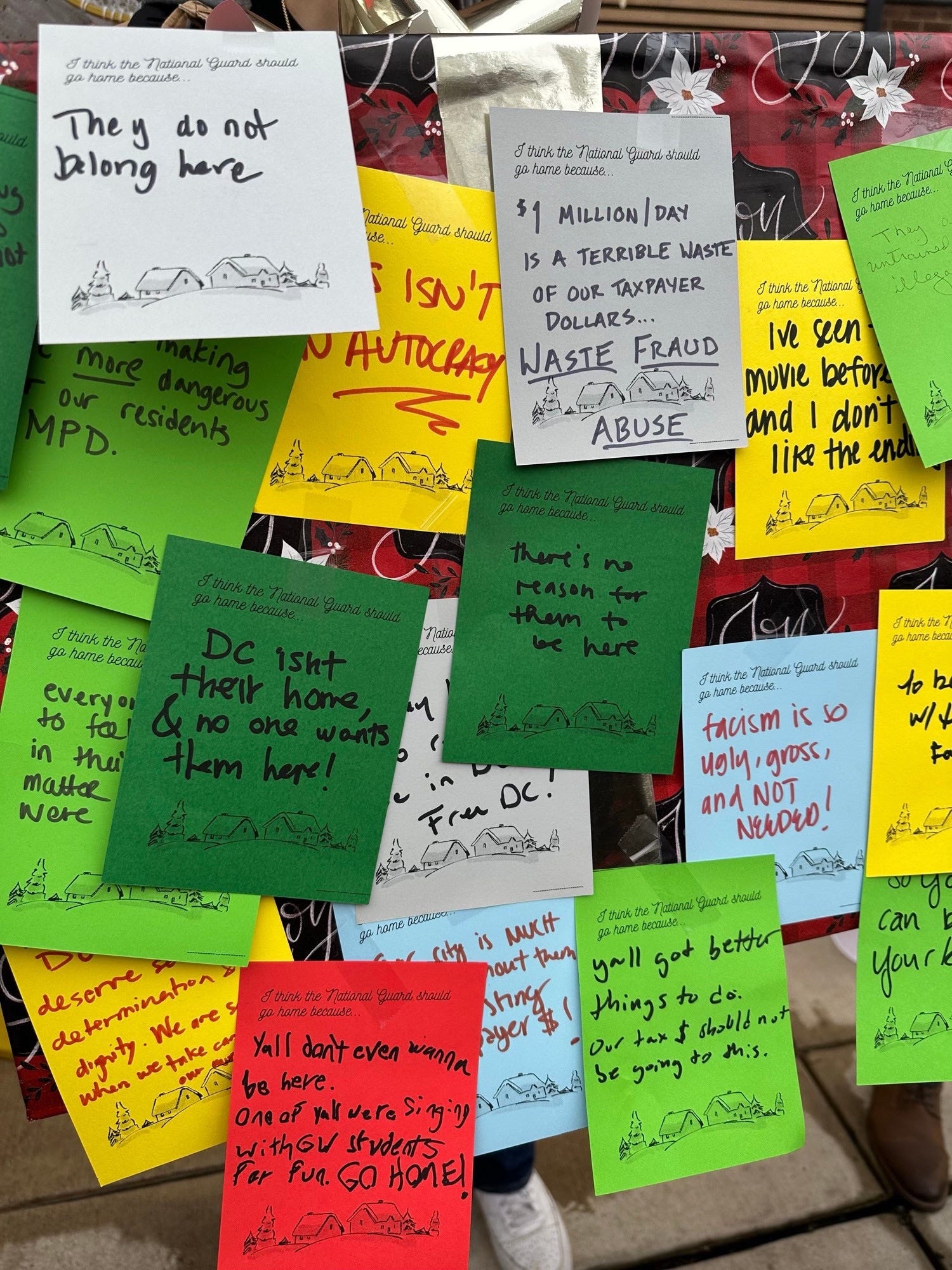 Do I feel safer? Absolutely not. In fact, it’s not clear at all what the National Guard troops are actually doing when they are hanging around Metro stops and other public places. When I was in Union Station the week before the shooting, I stopped to engage the DC National Guard members who were posted at the top of the Metro escalator. When I asked what they were up to on a sleepy Saturday afternoon, they admitted that there was nothing for them to do. On weekdays, they noted that there are often groups of teenagers going to and from school who sometimes get in fights. What a reason to spend hundreds of millions in tax dollars to cover the cost of these soldiers being away from home, work, and their families.
